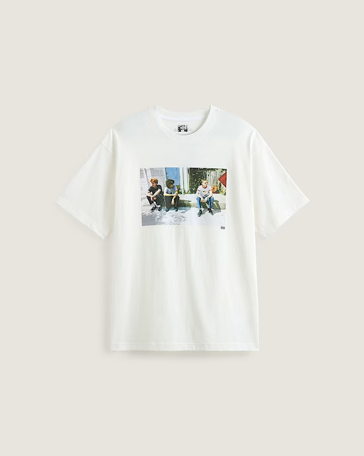 An everyday cotton tee gets Atiba's signature touch with a photo of Aidan Mackey, Rowan Zorilla, and Ben Kadow sitting curbside on the front, adding a nostalgic feel to an everyday staple. Custom Vans logo artwork from legendary graffiti artist Eric Haze tops off Atiba's nod to skateboarding. A classic crewneck, ribbed collar for structure, and 5-Checkerboard embroidery round out this uniquely wearable piece.